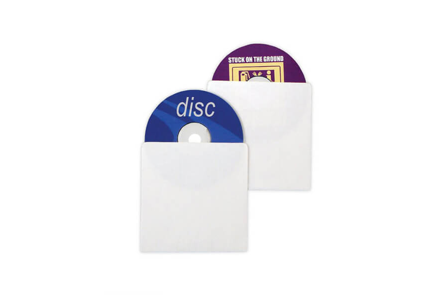 - Tyvek™ disc sleeve; top load with 3/16 inch ungummed extended lip